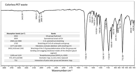 FTIR spectra of colorless PET waste before SubCW treatment.