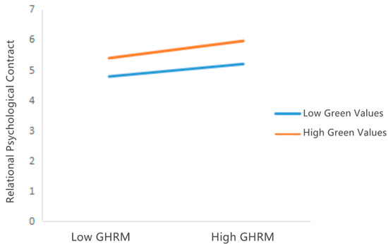 Moderating effect of green values between GHRM and the relational psychological contract.