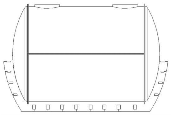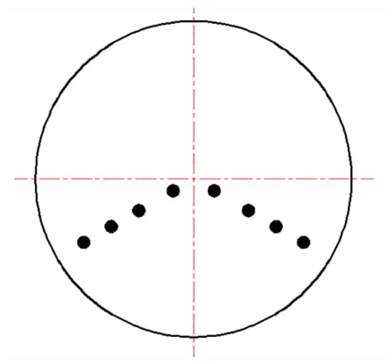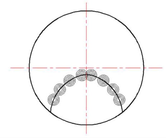 To obtain a better distribution of end heating guns, combining the size of the heat-affected area of the heat-affected mold obtained in the previous section and the actual distribution of rotomolding heating guns [,], the distribution of heating guns was set as shown in Figure 19.