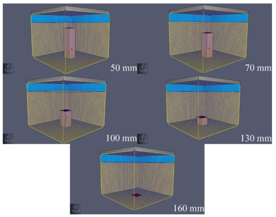 Taking the 30 mm heating gun as an example, the heating gun was modeled at distances of 50 mm, 70 mm, 100 mm, 130 mm, and 160 mm from the mold, and the distribution of each position is shown in Figure 4.