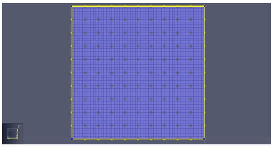 The purpose of this section is to study the temperature distribution on the outer surface of the mold after the mold is heated by a heating gun during the rotational molding process. To obtain accurate simulation results, a temperature probe is set on the lower surface of the mold. The arrangement of the temperature detectors is shown in Figure 5. Eleven rows of probes are set on the lower surface of the mold, with each row spaced at 0.02 m; each row contains 11 probes from left to right, with each probe spaced at 0.02 m. In this simulation, a total of 121 temperature sensors were arranged.
