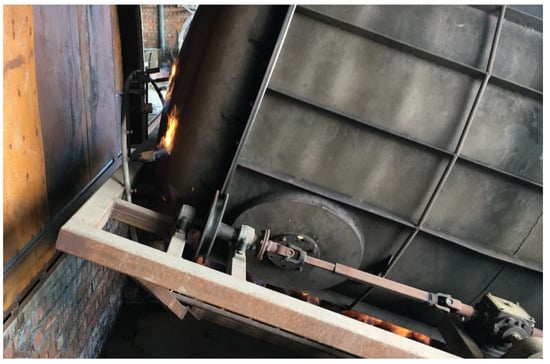 The experiments were carried out in the factory of Shihezi Boli Mechatronics Technology Co, Shihezi City, China. The rotomolding device was constructed with reference to the dimensions of the simulation model, and its structure is shown in Figure 24.