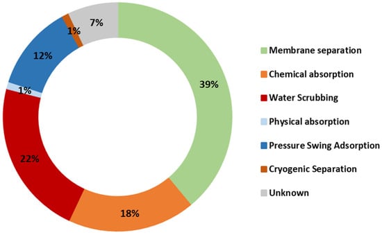 Market share of different upgrading technologies in Europe in 2020. Figure adapted from EBA, 2021.