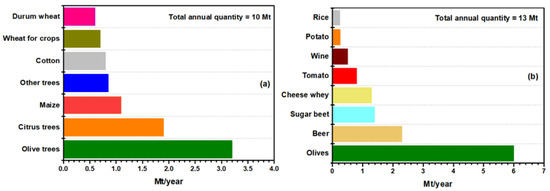 Agricultural (a) and agro-industrial (b) residues capacity in Greece.