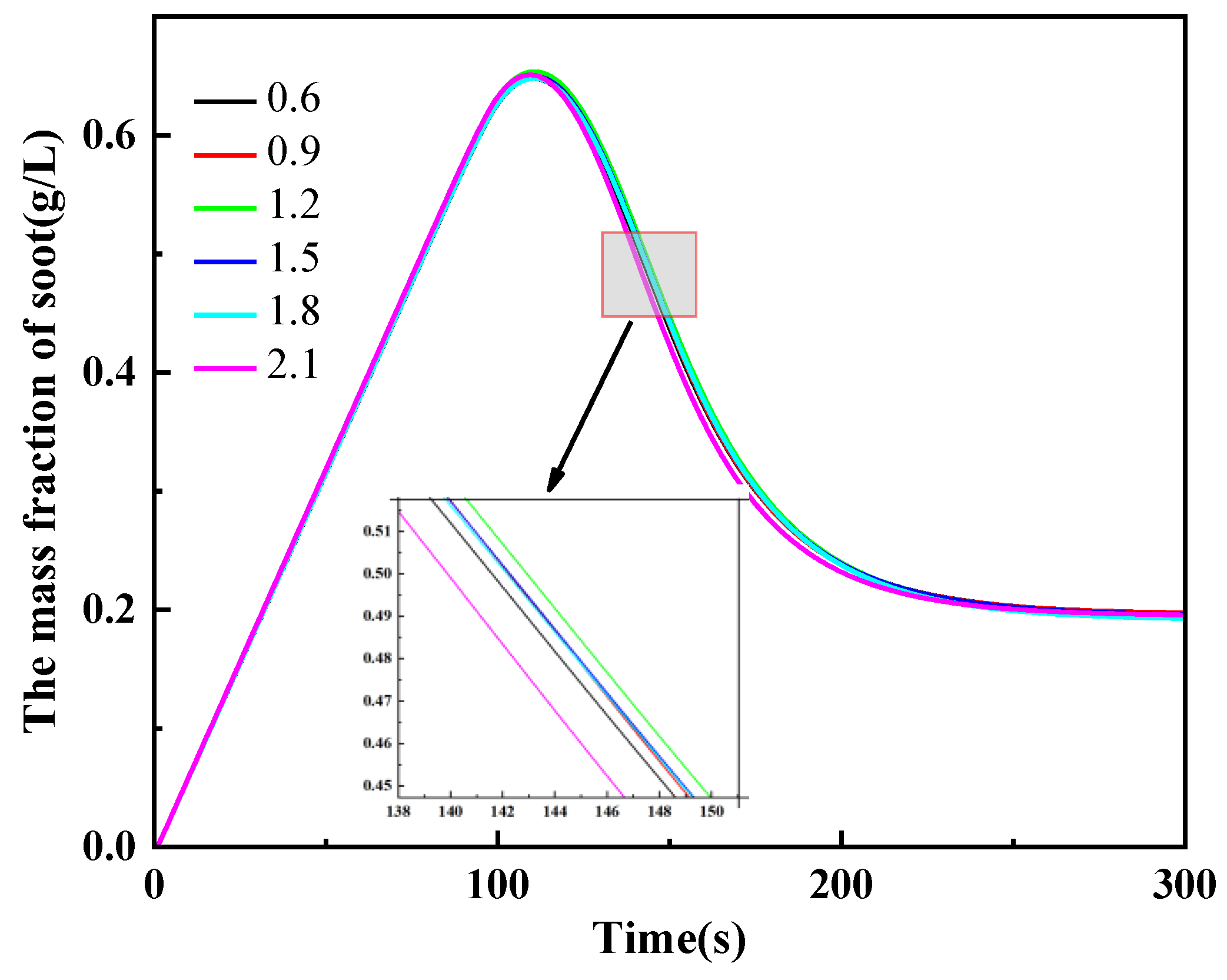4.6. Effect of Aspect Ratio on Soot Distribution