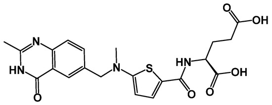 Raltitrexed, a classical antifolate, was the first drug approved for treating advanced colorectal cancer in the United Kingdom in 1996 [1]. It is a quinazoline analog with a 6-6 ring-fused structure, like natural folates, and is considered a “classical antifolate” [2]. The chemical structure of classical antifolates comprises folate analogs with a pterin ring, an aromatic ring and a glutamate tail [3]. Due to their charged glutamate tail, they are unable to passively diffuse across cell membranes and must be actively transported [3].