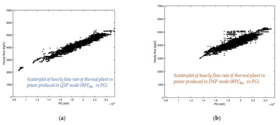 In this study, insulation, electricity production, and the consumption data of the energy plant are collected over years. The production data, meteorological conditions, information from the PV generators (PVG), and the diesel engines of the Thermal Power Station (TPS), were all obtained from the plant metering. The models have been carried out from data analysis conducted with the MATLAB Simulink (Version R2015, MathWorks, Netik, MA, USA) software, when suitable. Operating data for the months of February 2019 to November 2020 have been used. For this, we have extracted moments where the TPS operates with an identical number of engines (five, six, seven, eight, and nine) with the solar PV power production. Then, we established equations linking the hourly consumption flow rate (kg/h) and the power of the thermal groups operating.