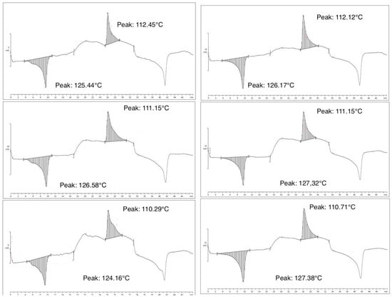 The melting points, crystallization temperature, and crystallinity of the scaled-up test samples are shown in Table 6; the DSC curves of all the scaled-up samples are shown in Figure 8.