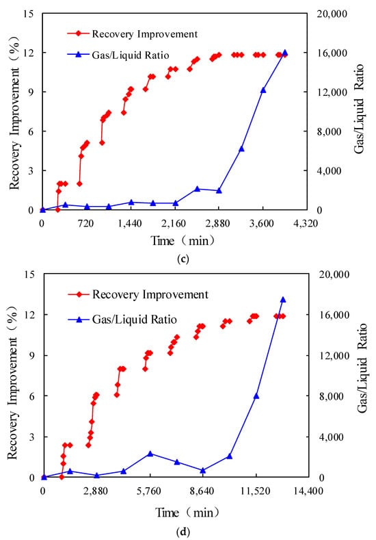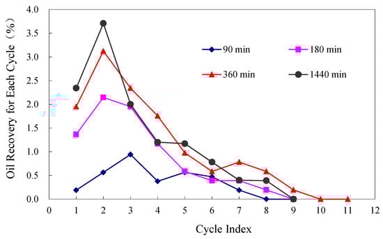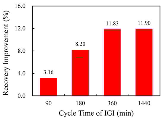 - The oil recovery is influenced by the cycle time of IGI. It improves obviously with the increase in cycle time and changes little when the cycle time reaches 360 min in the ultra-low-permeability reservoir.