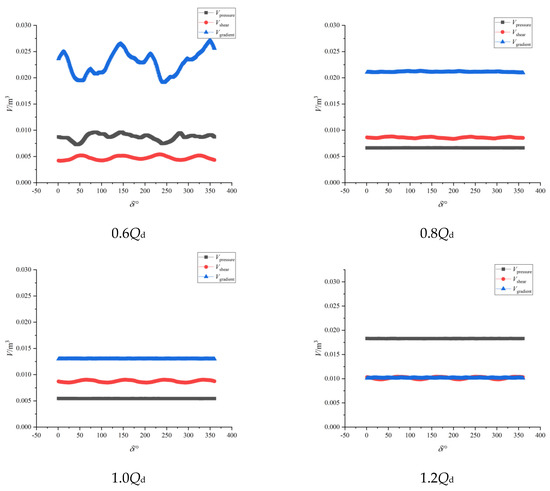 - The unsteady characteristics of the volume in the region that is below the pressure threshold, above the shear strain rate threshold, and above the pressure gradient threshold in the impeller are extensively studied. The findings show that the volume exceeding the shear strain rate threshold in the impeller is periodic and related to the number of blades under various flow conditions. Firstly, with the increase of flow rate, the volume in the region below the pressure threshold decreases and then increases. Secondly the volume in the region above the shear strain rate threshold increases with the increase of flow rate. Thirdly, the volume in the region above the pressure gradient threshold increases first, and then decreases with the increase of flow rate.