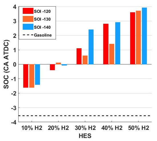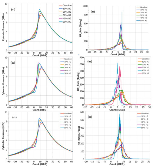 - Ji, C.; Wang, S.; Zhang, B. Effect of spark timing on the performance of a hybrid hydrogen–gasoline engine at lean conditions. Int. J. Hydrogen Energy 2010, 35, 2203–2212. [Google Scholar] [CrossRef]