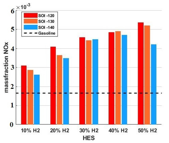 3.2. Influences of Hydrogen Direct Injection on Emissions