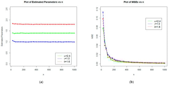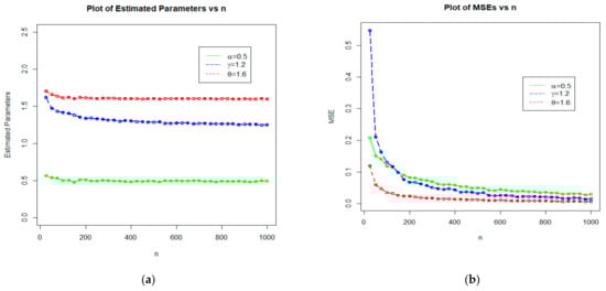 Simulation results on estimated parameters in terms of MSEs and Bias values are reported in Table 1, while graphically the results are displayed in Figure 5, Figure 6, Figure 7, Figure 8, Figure 9 and Figure 10.