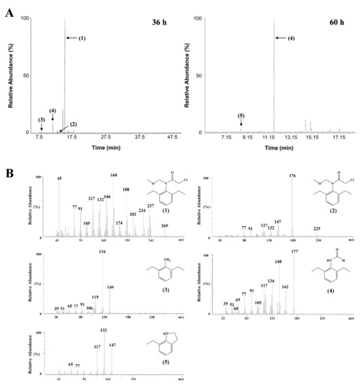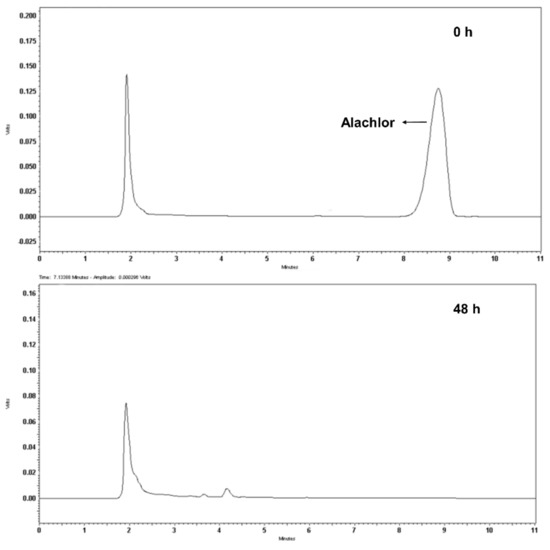 - Durães Sette, L.; Mendonça Alves da Costa, L.A.; Marsaioli, A.J.; Manfio, G.P. Biodegradation of alachlor by soil streptomycetes. Appl. Microbiol. Biotechnol. 2004, 64, 712–717. [Google Scholar] [CrossRef] [PubMed]