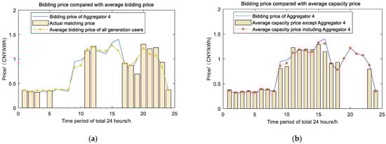 The bidding price comparison. (a) Compared with average bidding price; (b) Compared with average capacity price.