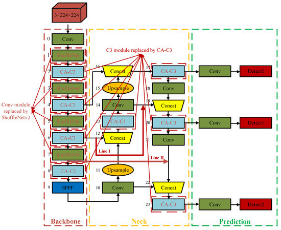 3.2.1. Improvement Based on the CA-C3 Module, New Connection and ShuffleNetV2