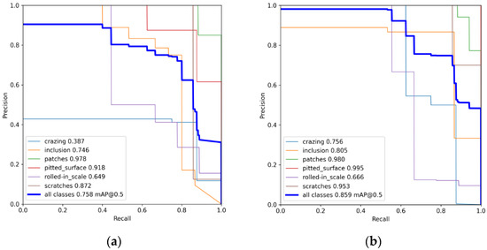 PR Curve: (a) YOLOV5; (b) Improved YOLOV5.