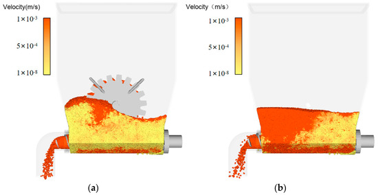 Seed velocity distribution in horizontal screw conveyor: (a) there is a stirring mechanism; (b) there is no stirring mechanism.
