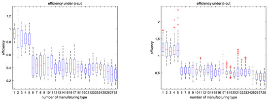 After set cutting with α-cut and β-cut, the fuzzy interval of relevant variables was substituted into the DEA model for calculation. The calculation method of the efficiency interval based on the α-cut method is expressed in Equation (2):