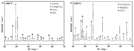 XRD patterns of ceramsite at 1000 °C (a) and 1050 °C (b).