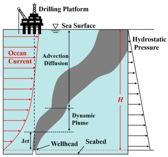 The spread of oil spills at sea will cause serious harm to the marine ecological environment. Rapid response and effective prevention methods are required to minimize the damage of oil spill accidents [8]. The critical problems that marine emergency rescue teams face are when the spilled oil reaches the sea surface, the extent of the spilled oil, and how far they are from the drilling platform. Therefore, it is of great significance to predict the underwater diffusion characteristics of spilled oil and its migration distance under the action of ocean current for the emergency response of oil spill treatment [9,10].