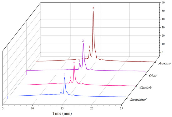 - Schulz, M.; Biluca, F.C.; Gonzaga, L.V.; Borges, G.d.S.C.; Vitali, L.; Micke, G.A.; de Gois, J.S.; de Almeida, T.S.; Borges, D.L.G.; Miller, P.R.M.; et al. Bioaccessibility of Bioactive Compounds and Antioxidant Potential of Juçara Fruits (Euterpe edulis Martius) Subjected to in Vitro Gastrointestinal Digestion. Food Chem. 2017, 228, 447–454. [Google Scholar] [CrossRef] [PubMed]