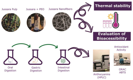 Giaconia, M.A.; Ramos, S.d.P.; Neves, B.V.; Almeida, L.; Costa-Lotufo, L.; de Rosso, V.V.; Braga, A.R.C. Nanofibers of Jussara Pulp: A Tool to Prevent the Loss of Thermal Stability and the Antioxidant Activity of Anthocyanins after Simulated Digestion. Processes 2022, 10, 2343. https://doi.org/10.3390/pr10112343