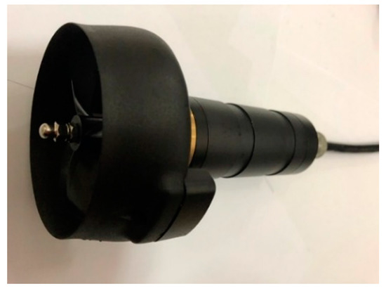 The underwater thrusters of the ROV are PCD-M170E made by Rhincodon Company (Cardiff, UK), which consists of a built-in driving board and has the advantages of high efficiency, significant thrust, small volume, easy installation, and easy control. Figure 4 shows the physical appearance of the thruster, and Table 1 is its specification. The speed of the thruster is controlled via PWM. The thruster has a maximum thrust of 6.5 kg and can be operated at the underwater depth of 300 m, which is easy to use and can achieve the performance required in this study.