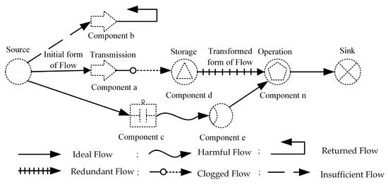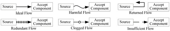 In the reference [56], the author has classified the three-dimensional flow of products (material flow, energy flow, and signal flow) into six types according to the activity state, namely, returned flow, clogged flow, insufficient flow, ideal flow, redundant flow, and harmful flow (see Figure 1).