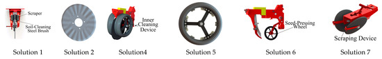 | Depth-limiting wheel scraper | Adhesive soil | Operation | - | Ideal |