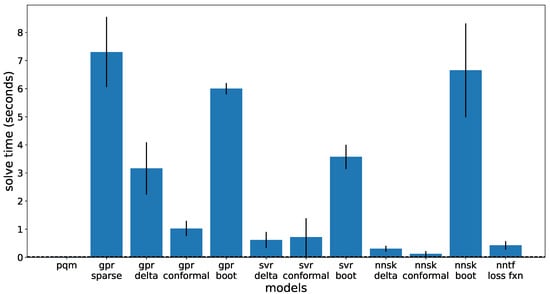 Other regression methods have been investigated to determine if they are compatible with Gekko and gradient-based optimization. The most common models are neighborhood based or tree based models that either need to sort the training set or create splits within the training set to produce a regression. These models include K-nearest neighbors, decision tree regressors, random forest regressors, gradient boosted tree regressors, and several others []. Some of these regressors are potentially interesting due to the ability to generate an uncertainty with a point prediction, particularly the gradient boosted tree regressor, which could use a quantile based loss function to generate upper and lower bounds [,,].
