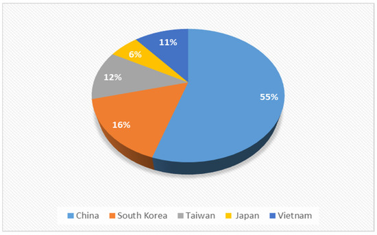 Thirdly, Vietnam’s textile and garment industry has been heavily affected by the COVID-19 epidemic, due to the supply chain depending on a few key partners. The supply chain was interrupted when the COVID-19 epidemic broke out in early 2020 because Vietnam imported up to 89% of fabrics, with 55% from China, 16% from South Korea, 12% from Taiwan, and 6% from Japan, as shown in Figure 2 [10].