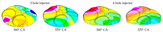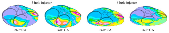 To obtain a greater engine performance and to improve the volumetric efficiency of the HCNG engine, direct injection is attainable to substitute for port injection [20,21]. Conducted studies reported that higher combustion efficiency and faster combustion duration is obtained from DI’s higher rate of heat release [22,23]. A study showed that a lower hydrocarbon emission was obtained in DI compared to port injection, whereas DI controlled the direct injection timing and can increase CNG performance [24,25]. Generally speaking, the port fuel-injection configuration suffers from many limitations, and as a potential solution for the HCNG SI engine, direct injection shows an overall efficiency that could advance the effect of the injector hole number and reduce the exhaust gas dilution rising in the cylinder temperature [26,27,28].