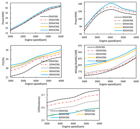 where mCNG fuel and mHydrogen fuel are the mass flow rates of gaseous fuels and spray fuels, respectively. The ratio of gas fuel flow rate to hydrogen fuel determines the volume percentage of fuels.