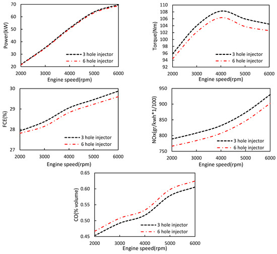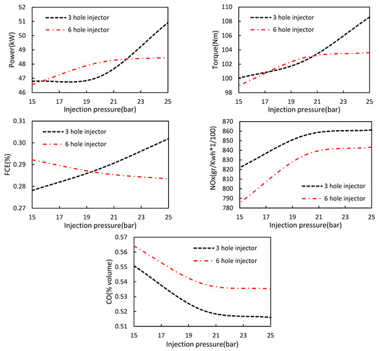 An enormous amount of environmental pollution is mainly caused by the automotive sector via use of fossil fuel applications [1]. Vehicle exhaust emissions transmit volatile organic compounds, leads, NOx, and CO, and the origin of the highest emissions is from a low air-to-fuel ratio and low exhaust flow; thus, more attention has been shifted toward the deployment of alternative fuels for environmental protection [2,3]. As a consequence, exhaust emission content concentrations are dependent on engine design, exhaust gas after treatment, operational parameters, injector hole number, fuel additives, and fuel types [4].