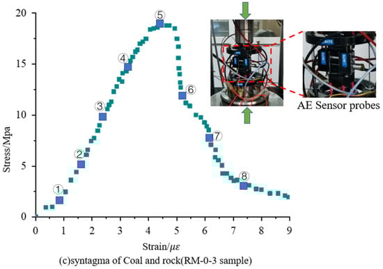In terms of experiments, scholars have conducted much experimental research on the problem of dynamic disasters in coal mining by using acoustic emission technology. Acoustic emission technology is combined with uniaxial compression, triaxial compression, permeability experiments, splitting experiments, three-point bending experiments, and 3D simulation. This paper expounds the changes in coal stability from the perspectives of energy, fracture evolution, and strength change. For example, some scholars have analyzed the influencing factors of on-site coal and gas outbursts through acoustic emission technology, and have studied the application of acoustic emission techniques in evaluating coal subsurface gasification models and operational parameters [,]. They described the gasification process using acoustic emission techniques, adopted more accurate prediction methods for prediction accuracy, studied the multi index discrimination model of coal and gas outbursts based on FDA, and applied the discrimination model to the prediction of coal and gas outbursts. The FDA method has broad application prospects in the prediction of coal and gas outbursts. In the study, the application of AE in evaluating the UCG model and operating parameters was discussed, and the gasification process was described according to the analysis results. The final results showed that AE monitoring was helpful in maintaining a safe and efficient UCG process. In 2019, some scholars carried out a uniaxial compression acoustic emission test on the experimental samples. They analyzed the mechanical properties of the specimens by using the acoustic emission technique in real time, obtained the basic mechanics and acoustic emission change laws of the sample in the whole fracture process, and analyzed the spatial evolution and analysis laws of acoustic emission []. The results show the relationship between the acoustic emission and the stress of the two samples.