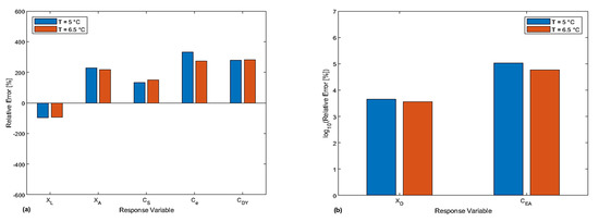 Final ethyl acetate concentration (CEA) ranges between 0.1 and 12.5 ppm for the temperature profiles, and it is generally (not always, e.g., Trials 8–19) increasing as a function of theoretical heat input (Q). Trials 1–8 have a linear trend, before the oscillatory behavior. A 70% jump between Trials 25 and 26 (using T = 7 °C for 40 h or longer), implies a threshold to be avoided, to prevent a high-Q CEA surge. Figure 14 shows a potentially useful high CEA sensitivity to small temperature changes: a small heat input change can strongly impact ester expression (Trials 25–26) without comparable changes in other flavor compounds, esp. as esters are typically near or just above beer flavor threshold values [20,21,22,23,24]. Minor process changes can induce beneficial flavor variations, as esters boost fruitiness (cf. Table 6).