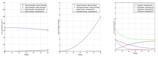 To ensure the foregoing mathematical model credibly describes fermentation systems, our script has been used to obtain several responses used for validation after comparison with published results.