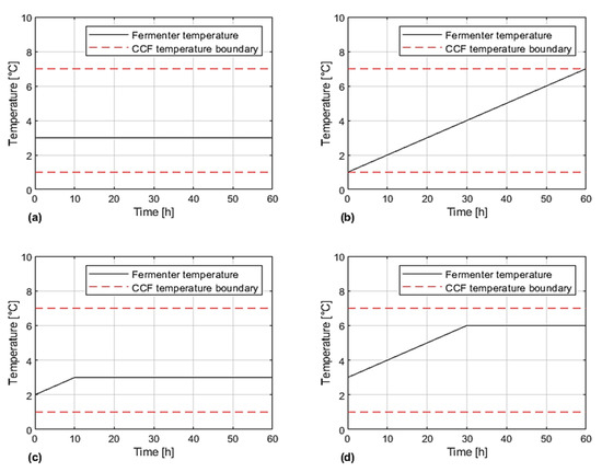 Laboratory-scale CCF research has been covered in the literature since inception [8,9], but CCF dynamic modeling has not yet received interest commensurate with beverage demand, especially compared with dynamic modeling and optimization success for ‘warmer’ ale and lager (6–22 °C) brewing [20,21,22,23,24]. We thus aim to pave the way for robust modeling platforms and higher industrial process efficiency.