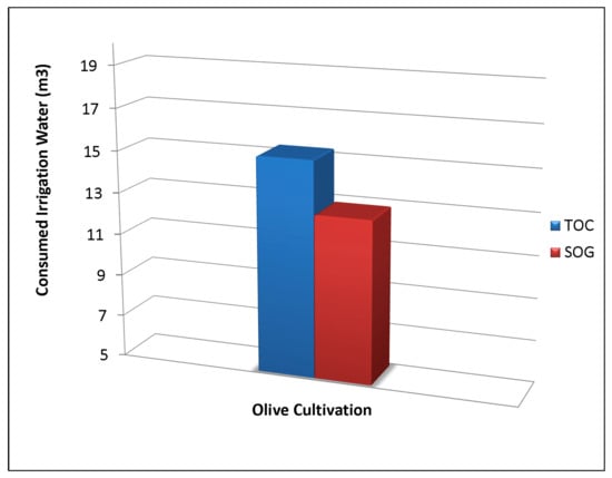 The amount of irrigation water needed throughout the season of SOG and TOC is shown in Figure 10. Saving the consumed amount from irrigation is important, especially in areas without rivers and suffering from water poverty; thus, more savings are better.