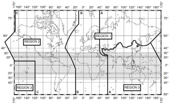 Division of the world into three geographical zones by ITU-R (Adapted from [5]).