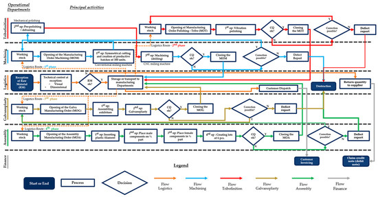 The implementation model in use at the company is quite identical to the one referenced in Section 2.2.5, and schematically represented in Figure 3. It can be noted that the model presented by Ngai et al. [8], which has already been applied in the textile industry, can also be used as a reference in the industry where the case study is based, the manufacturing of metal products.