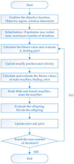 One method to get the best solutions to problems such as those outlined in this paper is to use artificial intelligence optimization algorithms [31]. The majority of these algorithms are based on natural events, with an objective function serving as a distance requirement for the best solutions. The selection of the goal function has the most impact on the results. The Mayfly algorithm [23] is one of the artificial intelligence optimization algorithms.