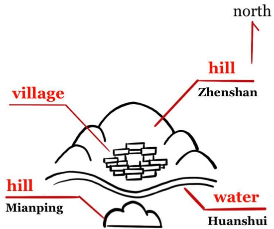 Firstly, Zhen Shan means that a settlement is built with hills at the back to protect it from the cold north wind, while it faces the sun to receive good sunshine. Secondly, Huan Shui, as a location strategy, is designed to meet the villagers’ daily needs for water usage and farmland irrigation, and to improve the climate conditions within the settlement. Thirdly, Mian Ping means there are hills at both the front and north of the village, and this enclosure can moderate the wind speed and make the whole wind environment more stable [].