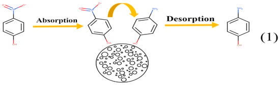 P-nitrophenol (4-NP) as a raw chemical material is widely used in the production of pesticides, rubber, explosives, fuel, medicine and other chemical products [,,]. 4-NP is stable and soluble in water, and it is a highly toxic, carcinogenic and refractory pollutant [,,]. 4-NP can enter the body through the skin and mucosa, respiratory tract and digestive tract, and an accumulation of a low concentration of 4-NP can also cause chronic poisoning, and high concentrations of 4-NP can cause acute poisoning leading to coma and death. Therefore, it is crucial to efficiently and sensitively detect 4-NP []. At present, the reported methods for the detection of 4-NP or nitro compounds mainly include spectrophotometry [], fluorescence spectroscopy, high performance liquid chromatography mass spectrometry [], capillary electrophoresis and so on [,]. However, these methods have many disadvantages such as them being expensive, having a long analysis time and having tedious analysis steps [,], which are limited in the process of analysis. Among them, the electrochemical method, due to its advantages of convenient operation, simple testing procedures, low cost, short analysis time, low limit of detection, high sensitivity, good reproducibility and stability [,], is widely used in the analysis of nitro compounds [].