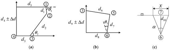 The common needle pitch of a high-speed lockstitch sewing machine is set between −5 and 5 mm, implying that the displacement of forward and backward movement of the feed dog x = 0~10 mm. Setting it to the target value, and taking d2, d3 and d6 that affect the target value to some extent as the variables, the relationship between the target value and the variable is calculated by Equations (4)–(10).