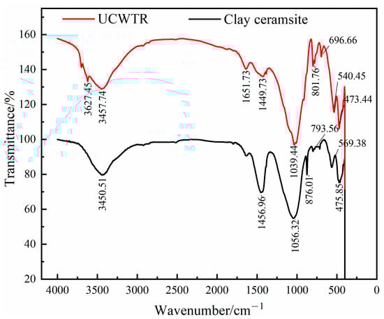 FT-IR of CWs UCWTR and clay ceramsite.