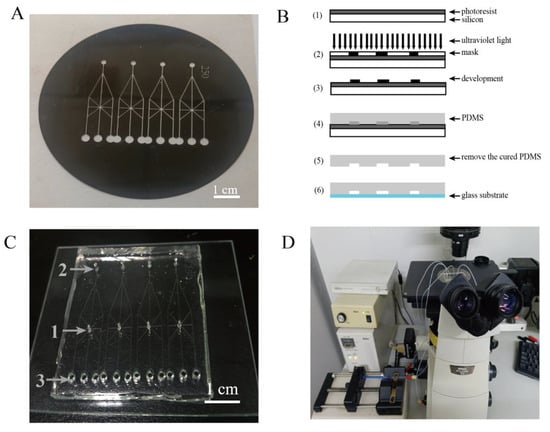 Polydimethylsiloxane (PDMS) Sylgard 184 was purchased from Dow Corning (Midland, MI, USA). Additionally, SU-8 GM1075 photoresist was purchased from the Gersteltec (Vaud, Switzerland). Silicon chips with a thickness of 360 μm were bought from Suzhou Double Metal Materials, Co., Ltd., Suzhou, China, while 1 mL syringes were bought from Nantong’s Biological Experiment Equipment Co., Ltd., Nantong, China. Cellulase, pectase, and calcium fluoride white were purchased from the Yuanye Biological Co., Ltd., Shanghai, China. The BTH was purchased from Sigma-Aldrich, Saint Louis, MO, USA. Other reagents were of analytical grade.