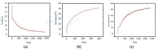 In Equation (12), the former is the root mean square error, and the latter is the cross-entropy loss. The loss of the cross-entropy term results in exponential amplification, making the model converge faster during the gradient of the training process. In addition, α avoids the process of convergence of authenticity learning instability because of an excessive RMSE. The value of α is selected by the training accuracy after five epochs, and the results are shown in Table 2. Note that since α is a hyperparameter used during the training of the generator, the accuracy being compared here is the accuracy of the generator.