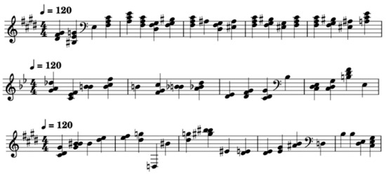 - Steedman, M.J. A generative grammar for jazz chord sequences. Music. Percept. 1984, 2, 52–77. [Google Scholar] [CrossRef]